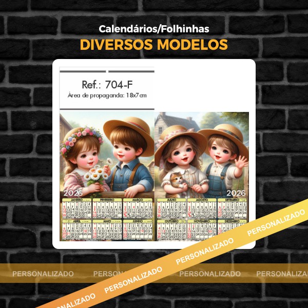 Folhinha de parede personalizada, acabamento de primeira, papel grosso, calendário com letras grandes e visíveis, personalizado com seu logotipo.