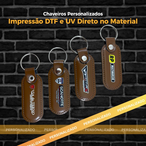 Chaveiro produzido em PVC, acabamento com argola impressão digital com seus dados.